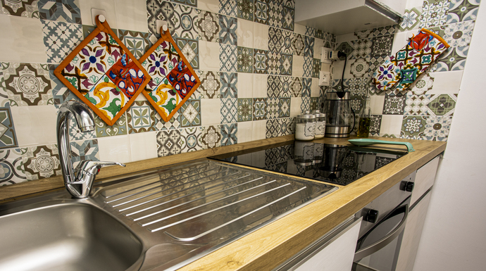 Gli spazi sono ben organizzati: zona notte, angolo cottura attrezzato e completo, bagno moderno e una splendida docciaextra .